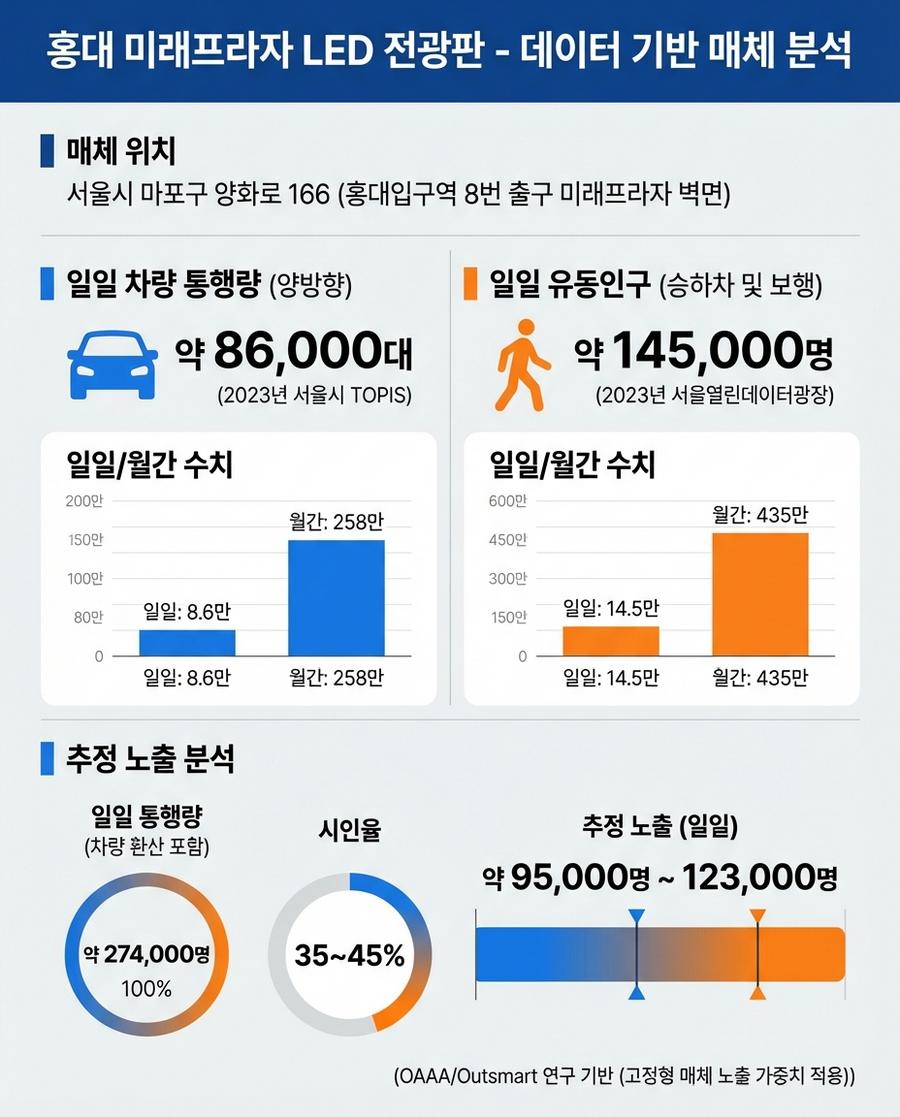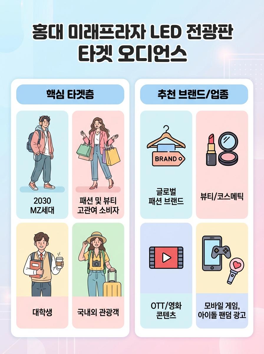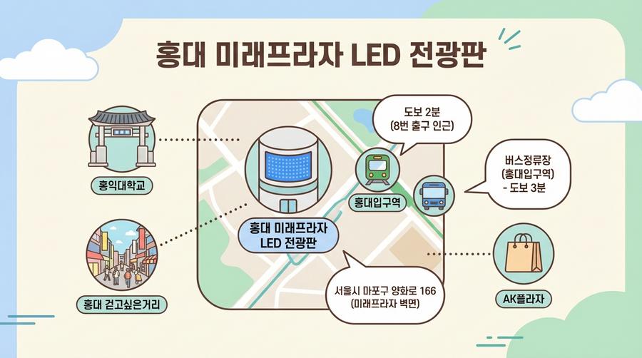 2026년 02월 10일홍대 미래프라자 LED 전광판은 서울 마포구의 핵심 상권인