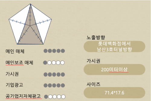 한국은행 교차로에 위치해 지리적 상징성과 가시권 좋은 고해상도 전광판으로 가성비또한 좋아 공기업및지자체에 적합한 매체임